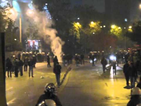Das Video haben Friedemann und sein Mitbewohner letzten Donnerstag in den Straßen von Thessaloniki gedreht. Anlässlich des Feiertags zu ehren der getöteten Studenten bei der Revolte gegen die Militärdiktatur vor etwa 35 Jahren gingen ca. 15.000 Menschen auf die Straße. Größtenteils blieb es friedlich, lediglich die Videokameras vor den Banken wurden von der Fassade geschlagen. Noch bis nach Mitternacht lag Tränengas in der Luft...
